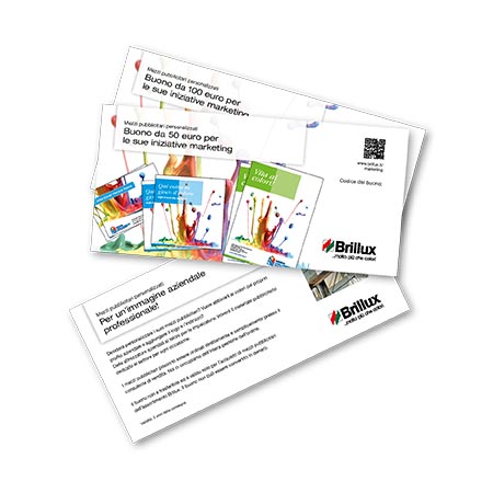 Migliorate la vostra immagine aziendale: approfittate di uno sconto di 50 euro su numerose soluzioni di marke-ting firmate Brillux. Scegliete il materiale promozionale più adatto alle vostre esigenze: per aumentare la visibilità della vostra azienda, acquisire nuovi clienti in modo mirato o promuovere servizi specifici. Brillux vi offre un supporto personalizzato che include: materiale pubblicitario stam-pato, gadget promozionali, campagne pubblicitarie e molto altro ancora.